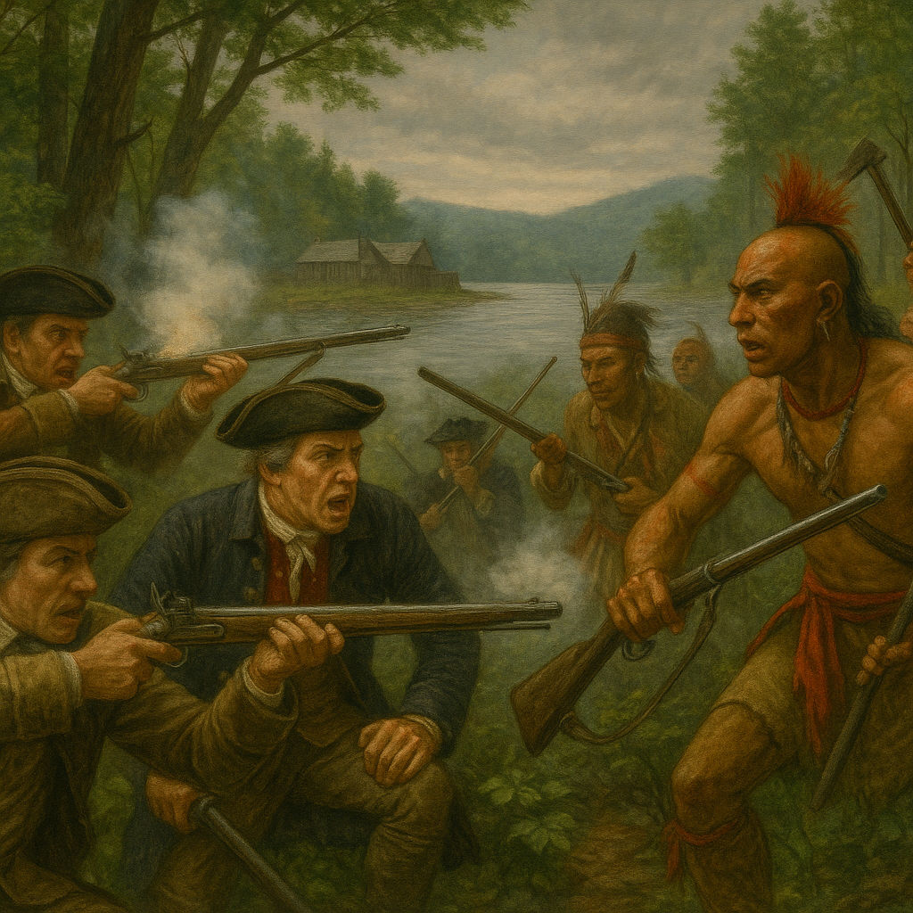 American and Iroquois-aligned British forces clash in minor engagements near Fort Ticonderoga as control of the frontier remains contested.