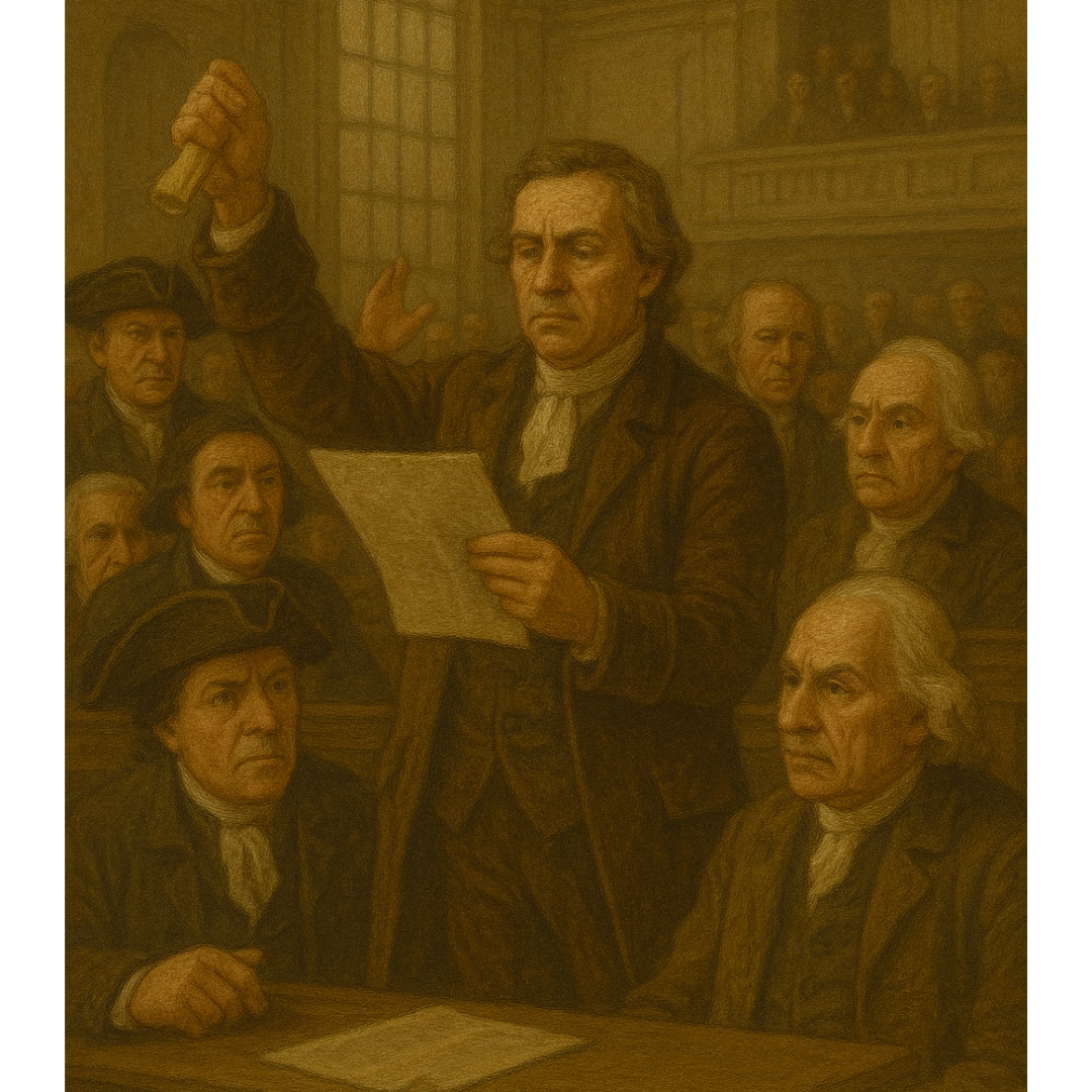 Patrick Henry passionately calls for war against Britain at St. John’s Church, convincing many Virginians to prepare for armed resistance.