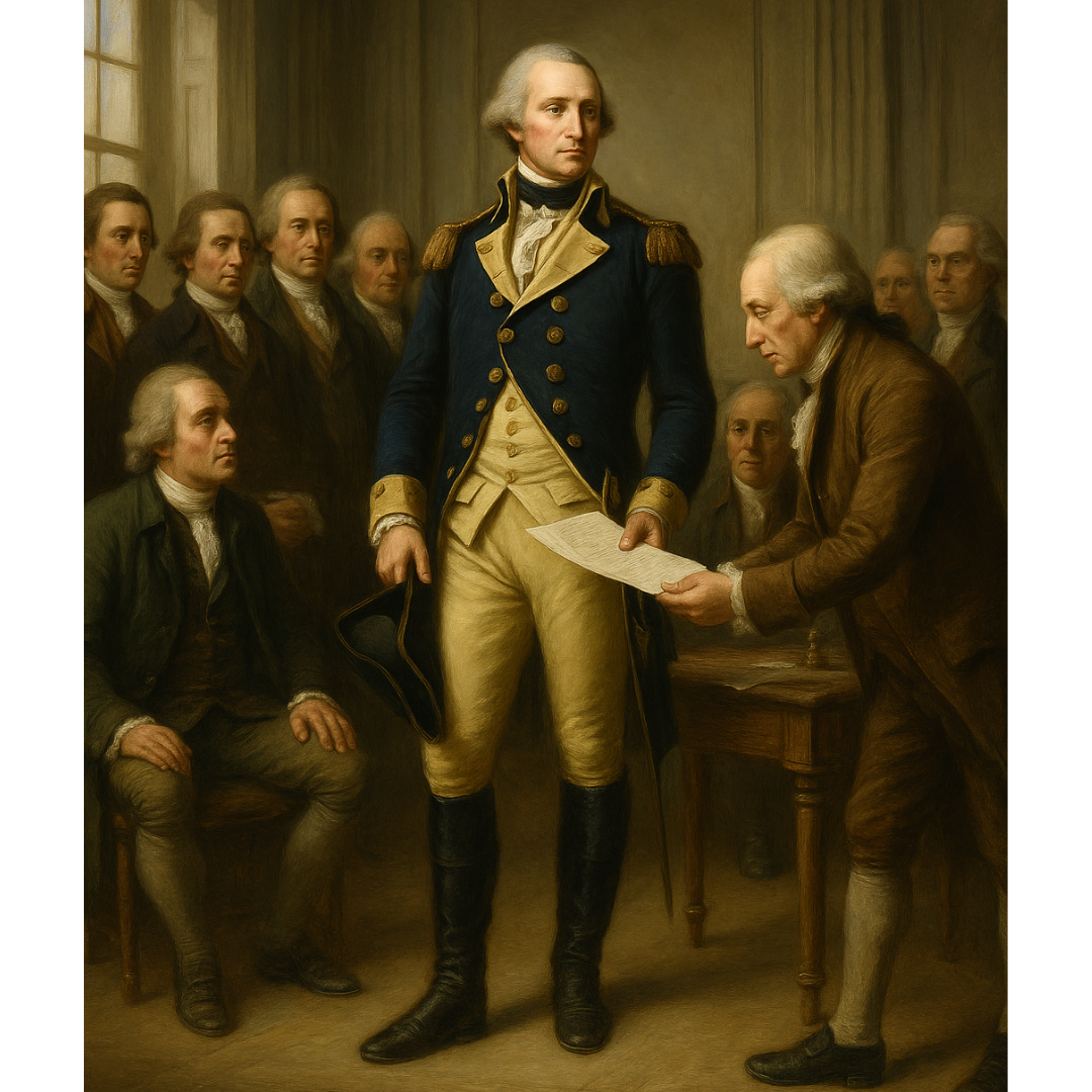 Congress unanimously selects George Washington to lead the newly formed Continental Army, uniting the colonies under a single military leader.