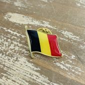Belgium crossed with America friendship flag lapel pin, with clutch fastener for securing to clothing.
