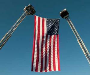 When the flags were lowered, they were placed in a fire engine and driven to the National Fallen Firefighters Memorial in Emmitsburg, Maryland. On Columbus Day, October 12, the Capitol banners will be given to survivors of the heroes.
