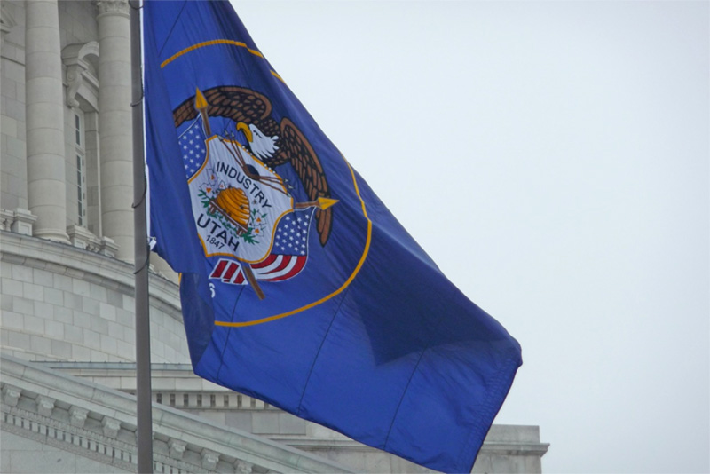 In short, the Utah state flag contains two American flags. It also contains two years: 1847, when members of the Latter-Day Saints came into the territory, and 1896, honoring statehood. To top it off, the top of the flag bears the word “Industry.”