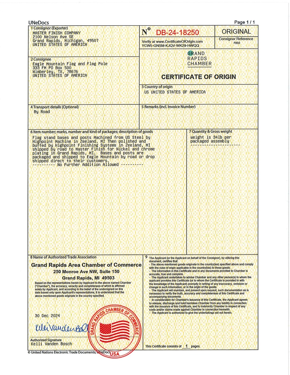 Crafted to meet strict U.S. government specifications, this heavy-duty guidon pole stand is built for performance and durability. Available in mirror-finish chrome it weighs 28 pounds, ensuring exceptional stability even in high wind conditions.