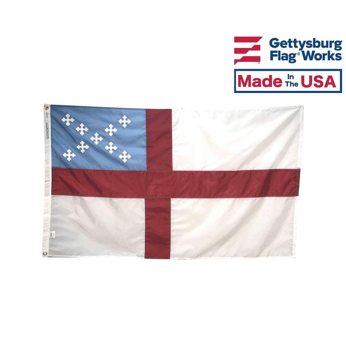 The Episcopal Church was founded in 1789 as a separate group from the mother Church of England, from which the churches in the colonies were separated by the American Revolution. The red white and blue colors are the colors of the American flag. Many of the founders of this nation, including George Washington, were Episcopalians. The white field with a red cross is the cross of St. George, the patron saint of the Church of England (and incidentally the colony of Georgia). This remembers the Episcopal Church's roots in the Church of England. There are nine miniature crosses on the field of blue symbolizing the nine dioceses that met in Philadelphia in 1789 to ratify the initial constitution of the Protestant Episcopal Church in the United States of America. The crosslets are formed as a x-shaped cross of St. Andrew, the patron saint of Scotland. This remembers the Scottish Episcopal Church's important role in our history as it was their bishops who ordained Samuel Seabury as the first American Bishop in 1784.