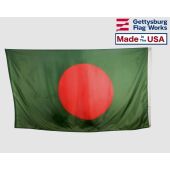 Bangladesh flags have a dark green field with a red disc that is slightly offset from the center. The disc represents the sun rising over the country, and its red color is intended to represent the blood that the people of Bangladesh shed during their war of independence. The green field represents the land's natural bounty.