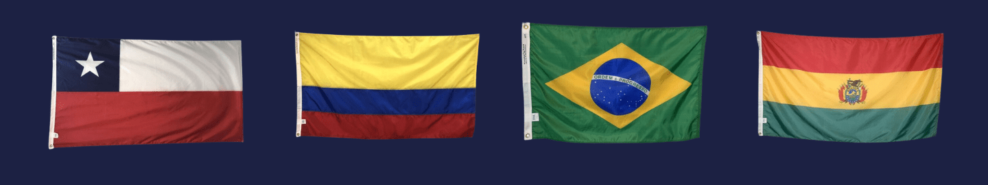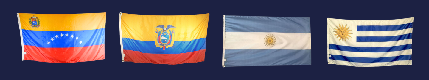 Whether you're interested in a South American flag, or you're in the market for another type of flag, be sure to check out our custom portfolios, or reach out to us with a design that you're interested in creating. Have questions? Give us a call at 1-888-697-3524 or contact us online and we'd be happy to assist!