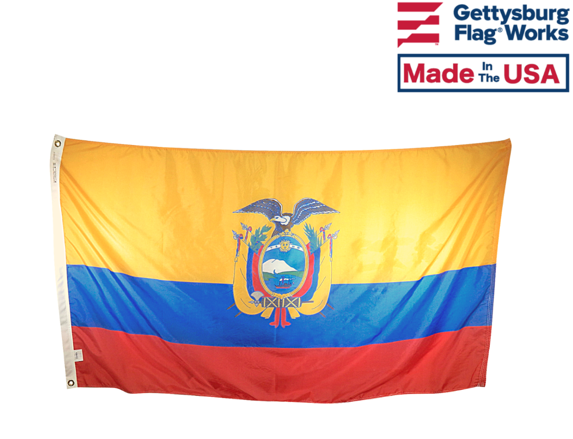 If you look closely, it is in the coat of arms emblem that is in the middle of the flag. There are many features that make this flag one of a kind and that is why it is a privilege to make them for you here at Gettysburg Flag. Whether you want the current Ecuador flag or the very first national flag, with five horizontal stripes and three stars across the middle stripe, we have what you need.
