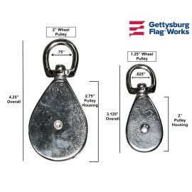 When it's time to replace the hardware on your in-ground flagpole’s halyard system, Gettysburg Flag Works carries a variety of high-quality, durable flagpole pulleys and replacement wheels, including Eyebolt Flagpole Pulleys, Vertical Mount Flagpole Pulleys, Fixed Eyelet Flagpole Pulleys and Swivel Eyelet Flagpole Pulleys.