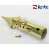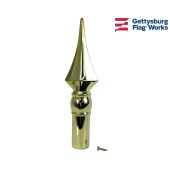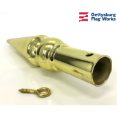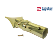 Flag pole ornaments, used for presentation sets and parades poles, are made of either gold aluminum, polished brass, or plastic and come in gold, brass or chrome finishes. Flag pole ornaments can even be custom made! Give us a call at 1-888-697-3524 or contact us online for more information on having custom ornaments made for your organization.