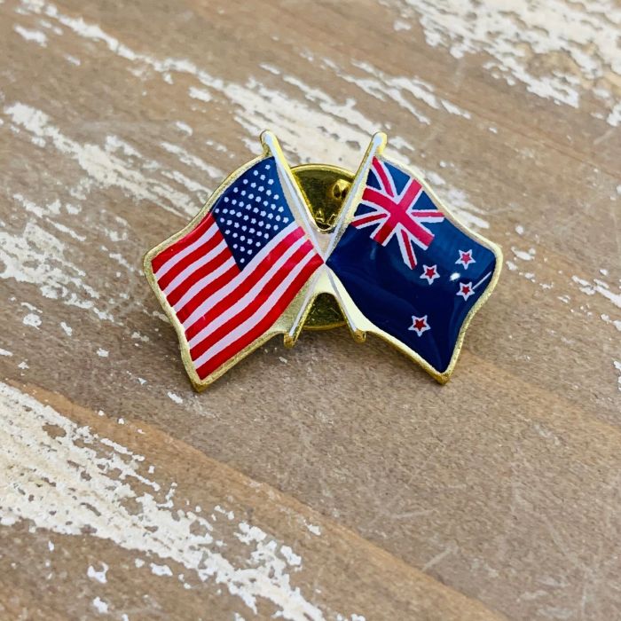 New Zealand Lapel Pin (Double Waving Flag w/USA)