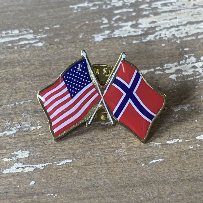 Norway Lapel Pin (Double Waving Flag w/USA)