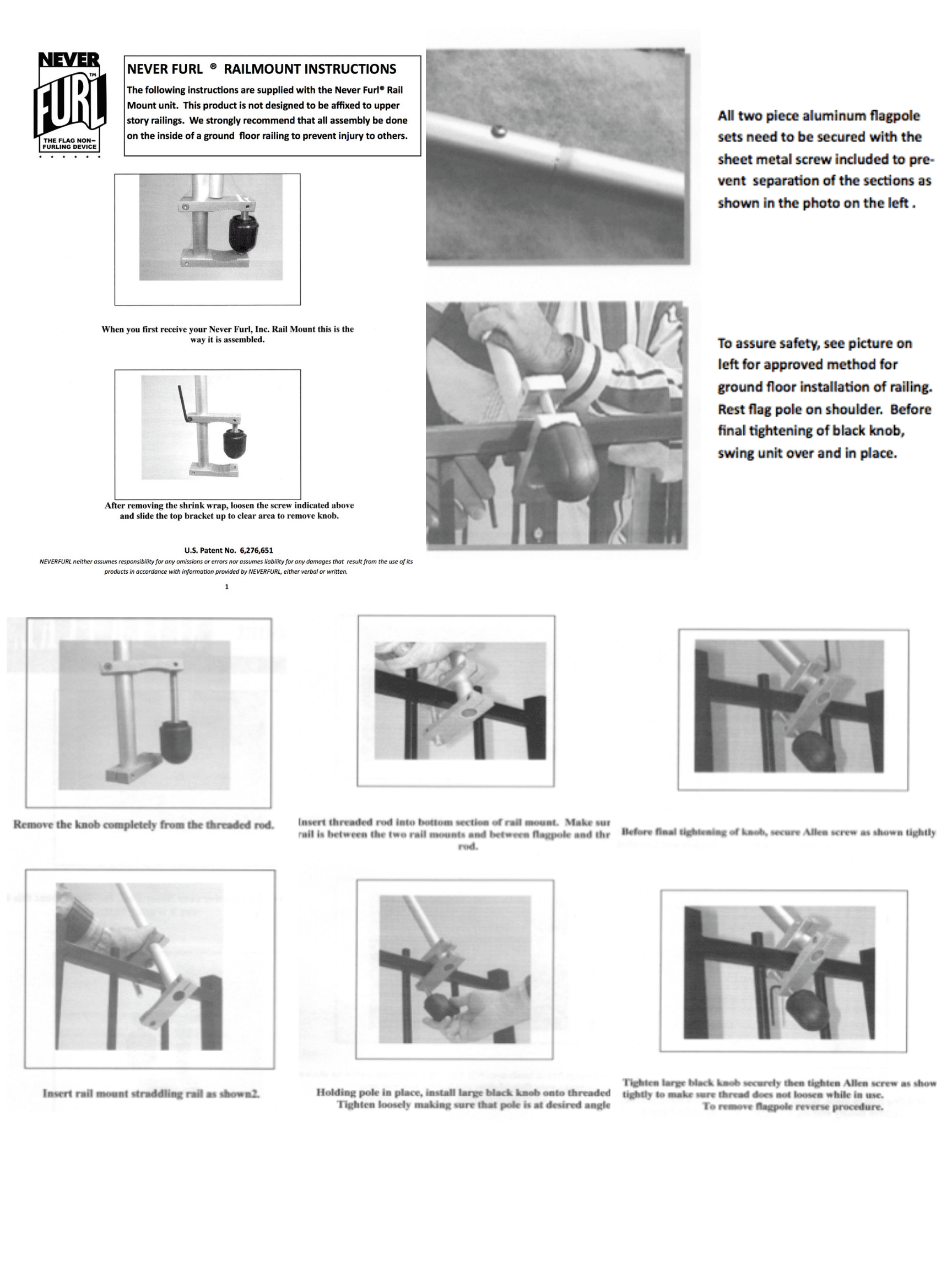 The Rail Mount can be used basically anywhere, but our customers love to use it for Residential settings, Camp sites, Marine applications, and some commercial properties. It is perfect for mounting flags on balconies, decks, or fences, enhancing the aesthetic appeal of your home or storefront.