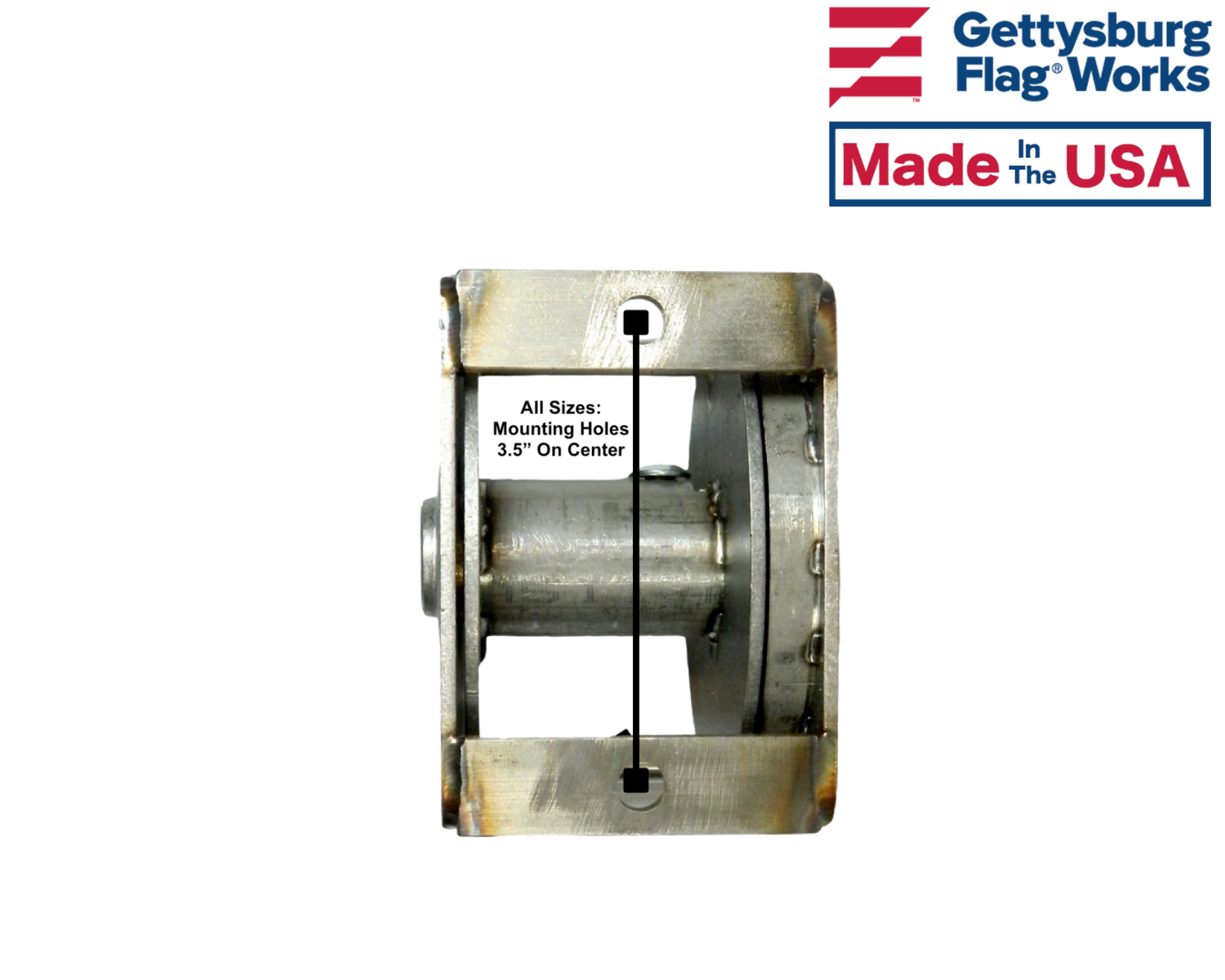 - Mounts to inside of flagpole with two 5/16"-18NC stainless steel bolts with 3 1/2" mounting centers.