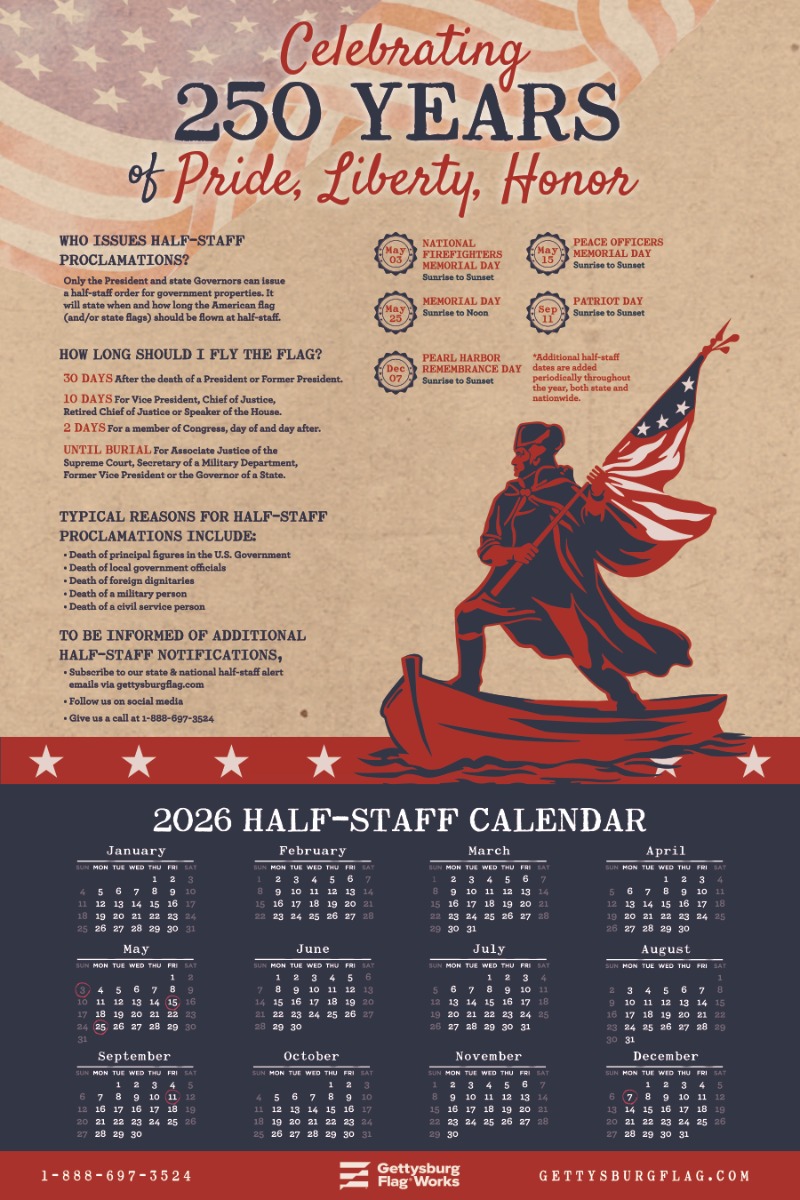 Read more about half-staffs and download our calendar here!