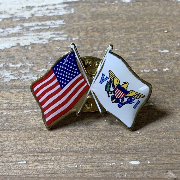 US Virgin Islands Lapel Pin (Double Waving Flag w/USA)